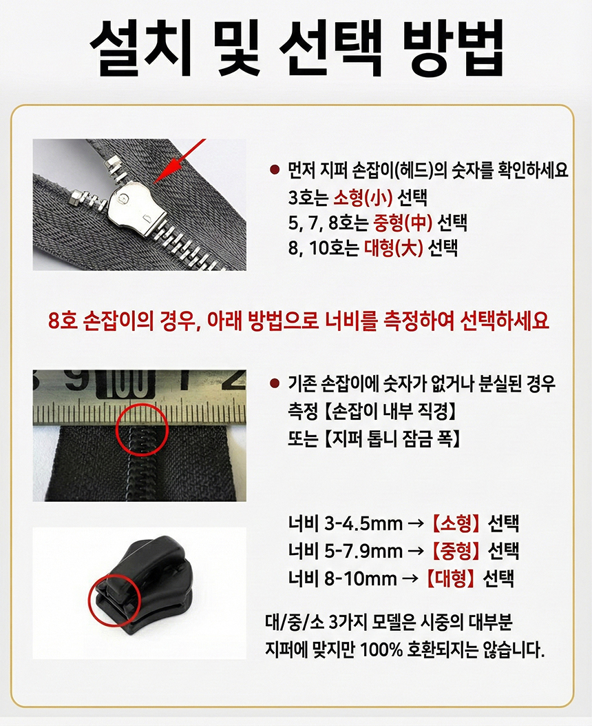 만능 지퍼 셀프 수선 수리 손잡이 헤드 머리 교체