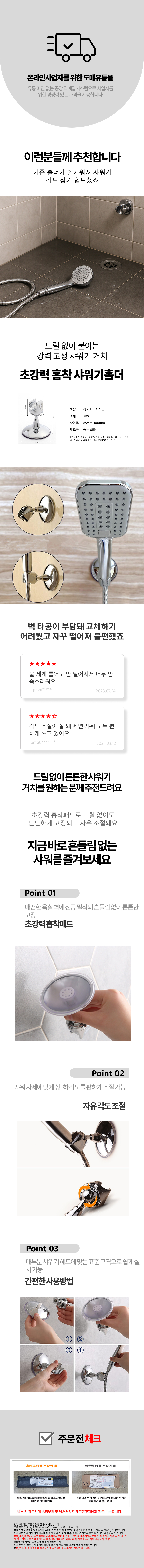 샤워헤드거치대 각도조절 샤워기거치 흡착 거치대