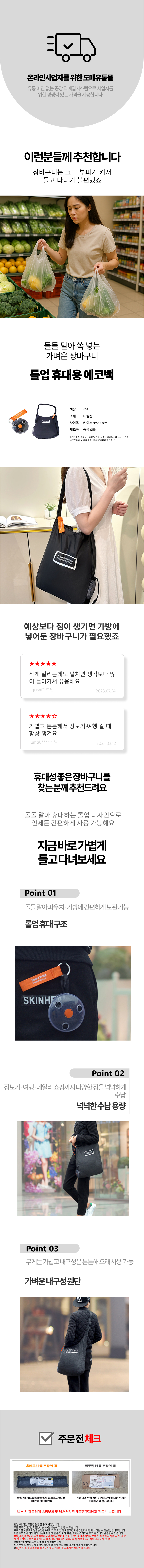가방 마트 휴대용 쇼핑카트 파우치 장바구니 롤업