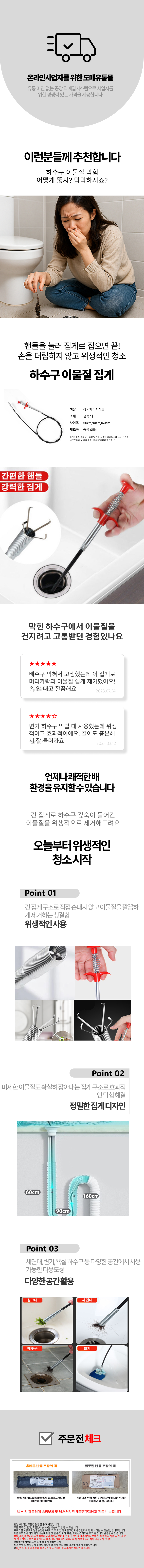이물질 배관 하수구집게 싱크대 머리카락 하수구 집게
