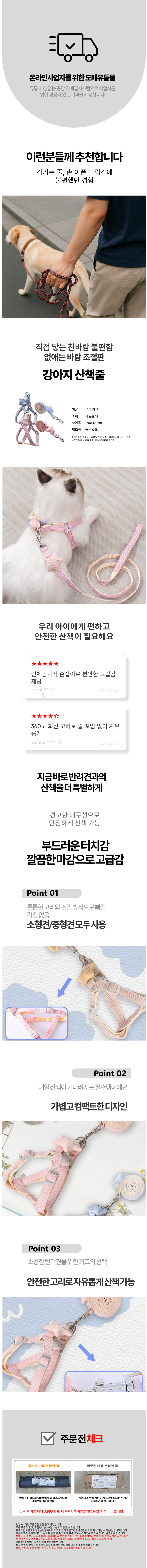 강아지 고양이 핸즈프리 리드줄 소형견 중형견용 줄