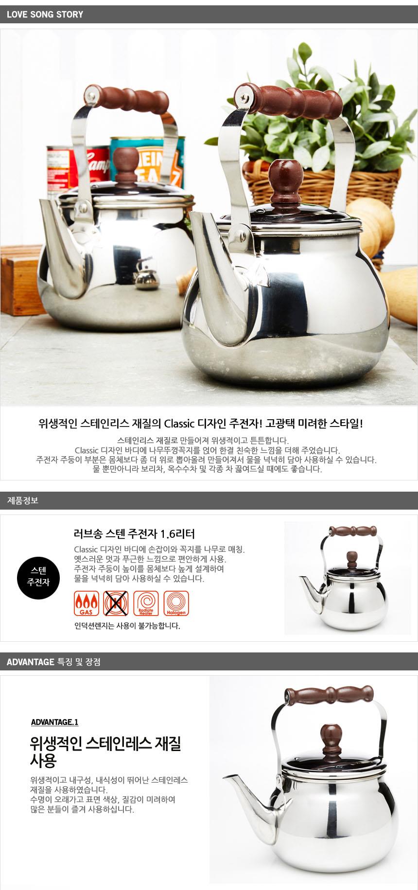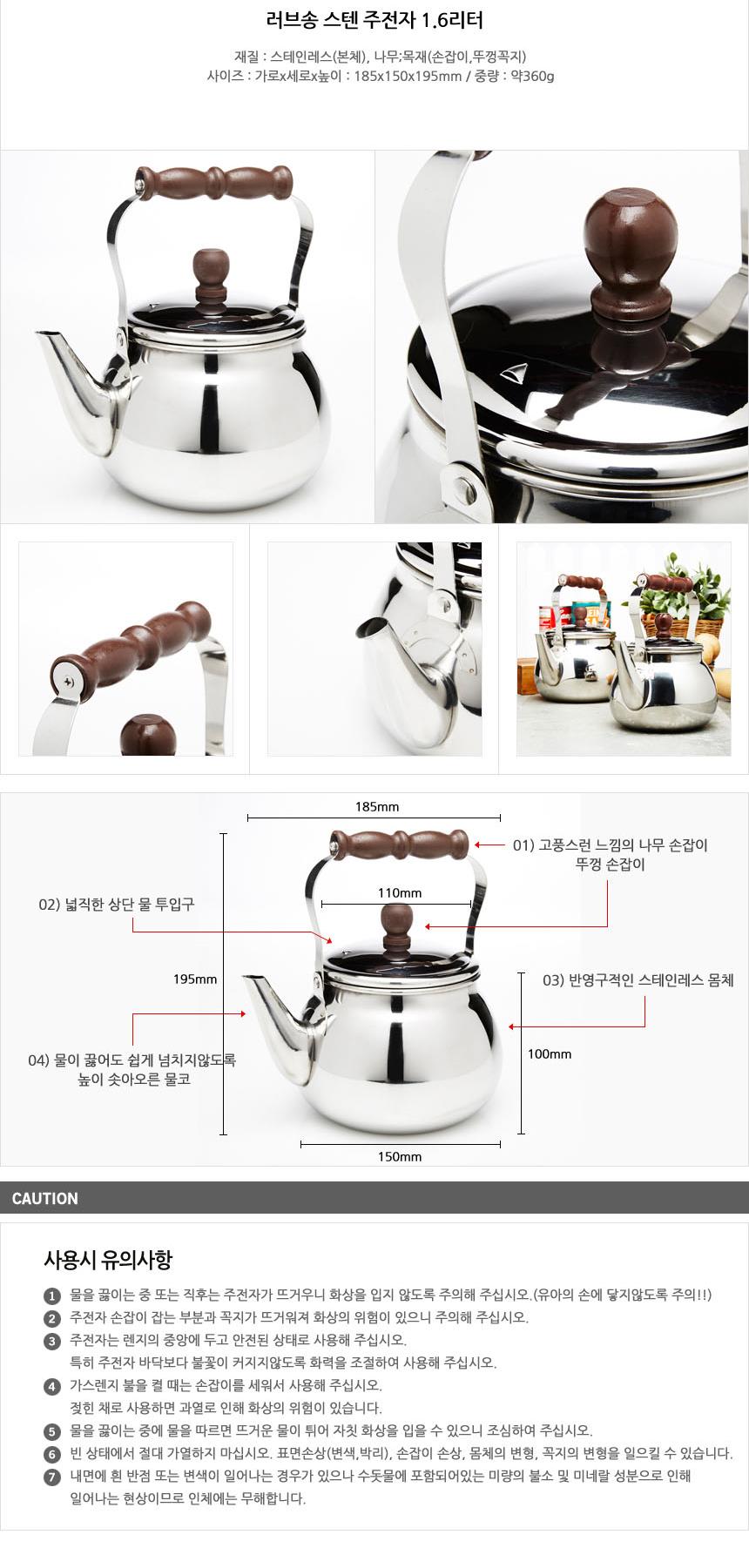 스텐 손잡이 물주전자 1.6리터 휘슬주전자 스텐주전자