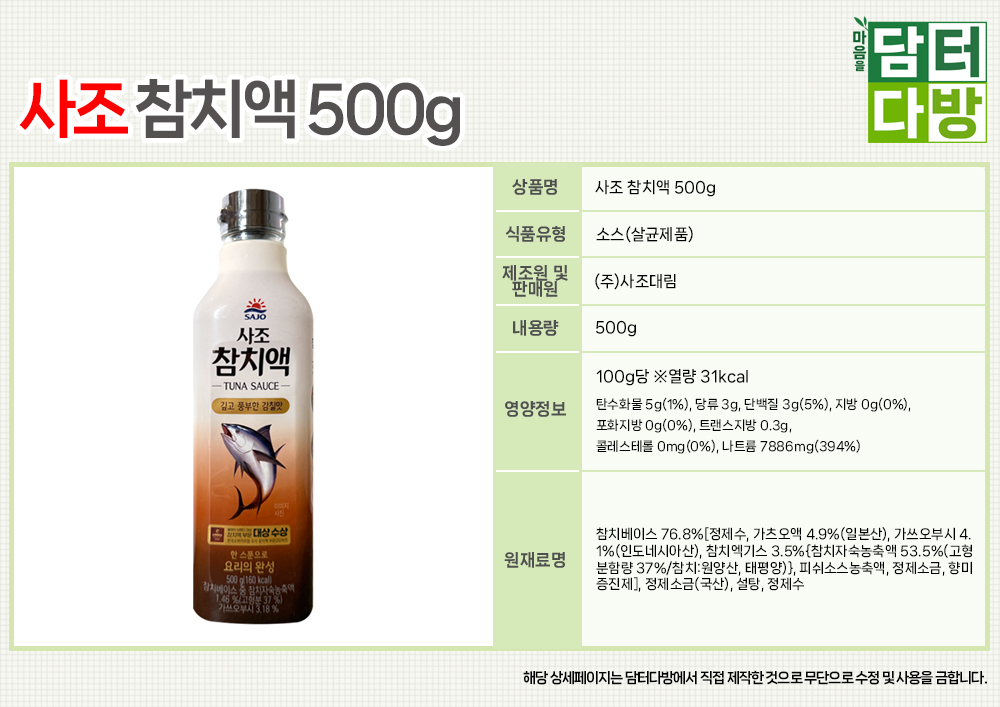 사조 참치액 500g X 3개