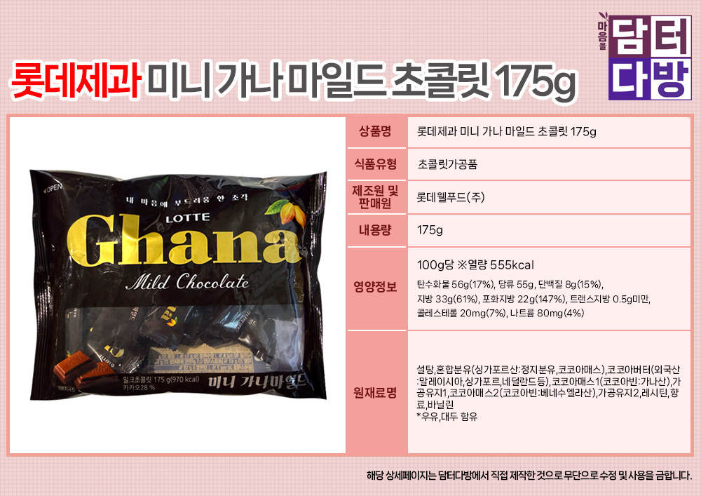 롯데제과 미니 가나 마일드 초콜릿 175g X 3개