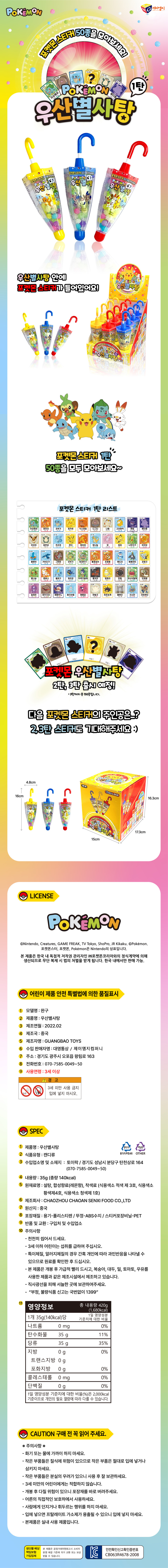 | 품명 및 모델명 | 포켓몬스터 우산 별사탕-12EA |