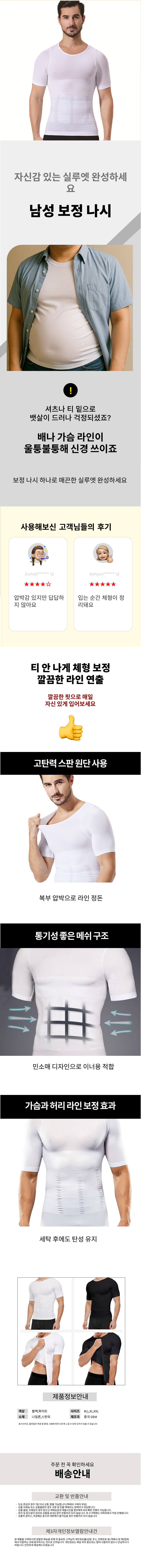 남성 보정티 가슴 허리 보정 교정 남성용 티셔츠
