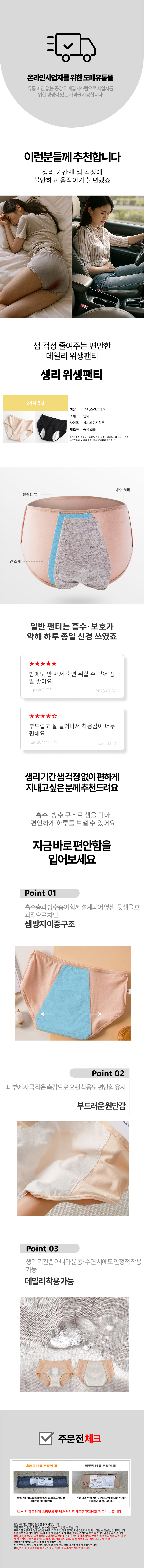 산모 샘방지 안심 방수 첫생리선물 여자 팬티 샘