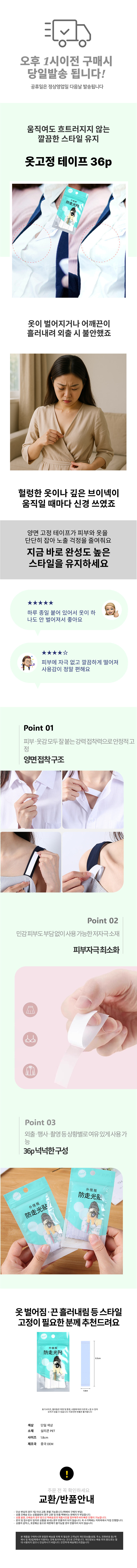 옷고정 테이프 옷맵시 노출방지 36p 벌어짐