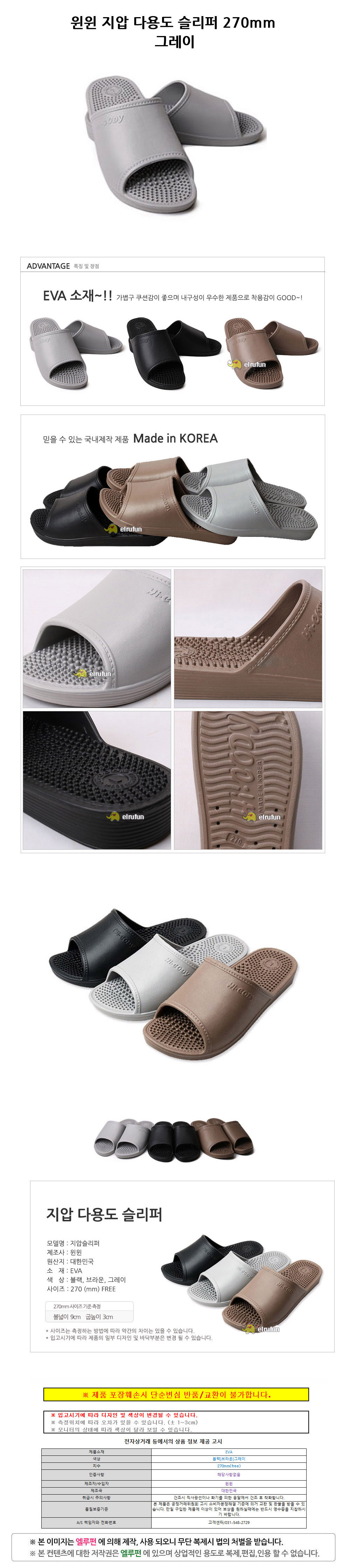 윈윈 지압 다용도 슬리퍼 270mm free 그레이