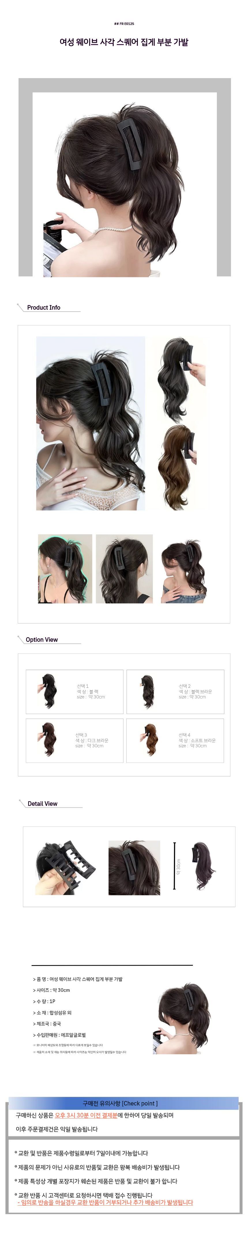 여성 웨이브 사각 스퀘어 집게 부분 가발