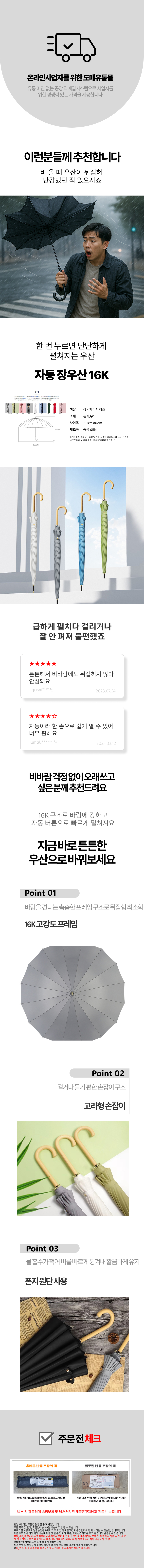 프리미엄 예쁜 자동우산 손잡이 폰지 판촉 우산 16K