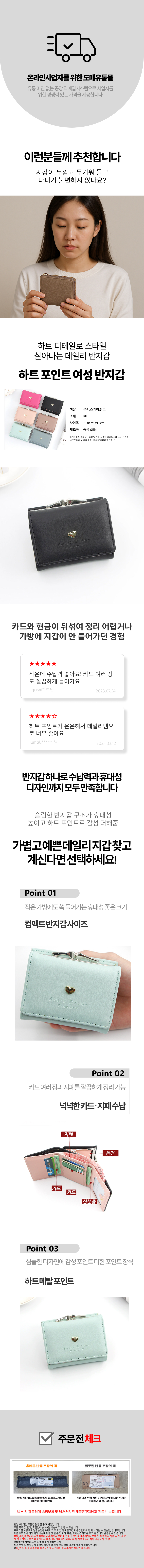 동전 심플 하트 수납 여성용 미니 하트포인트 지갑
