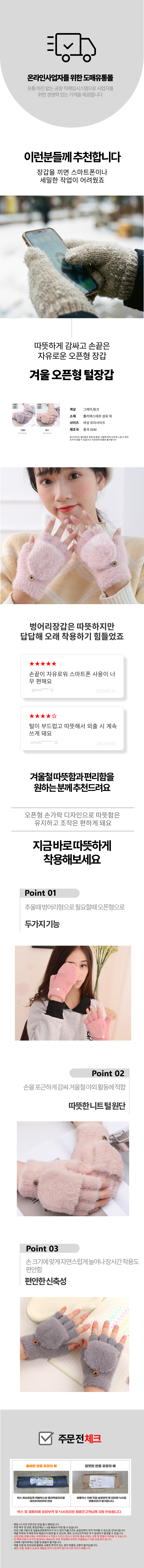 장갑 벙어리장갑 니트 오픈형 따뜻한 손가락장갑 여성