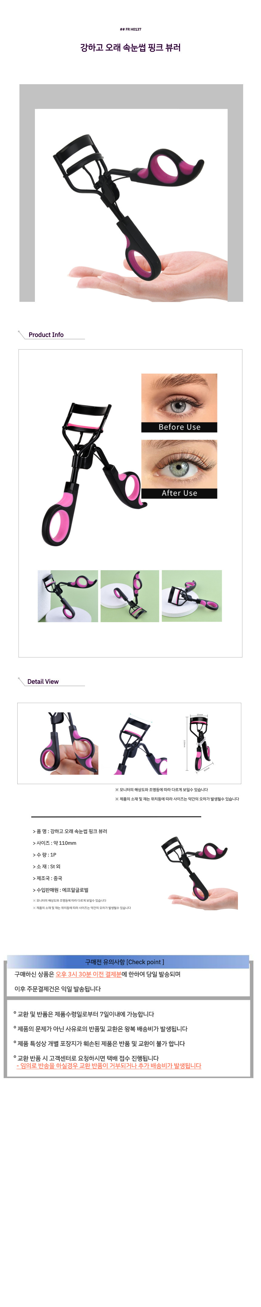 강하고 오래 속눈썹 핑크 뷰러