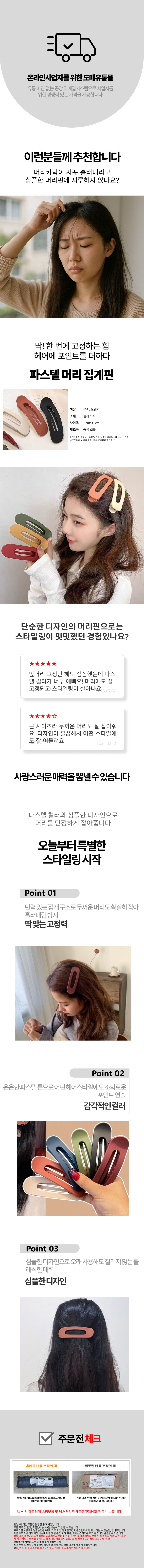 반머리 심플한 심플 머리 여성머리핀 왕 대형 헤어핀