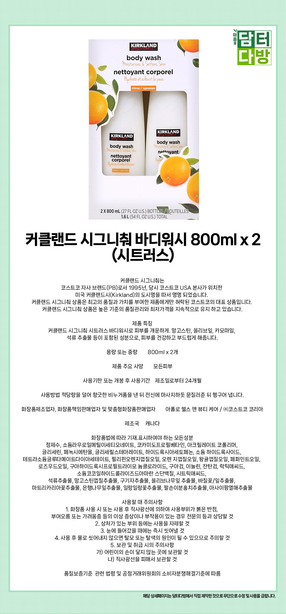 커클랜드 시그니춰 바디워시 800ml x 2 (시트러스)