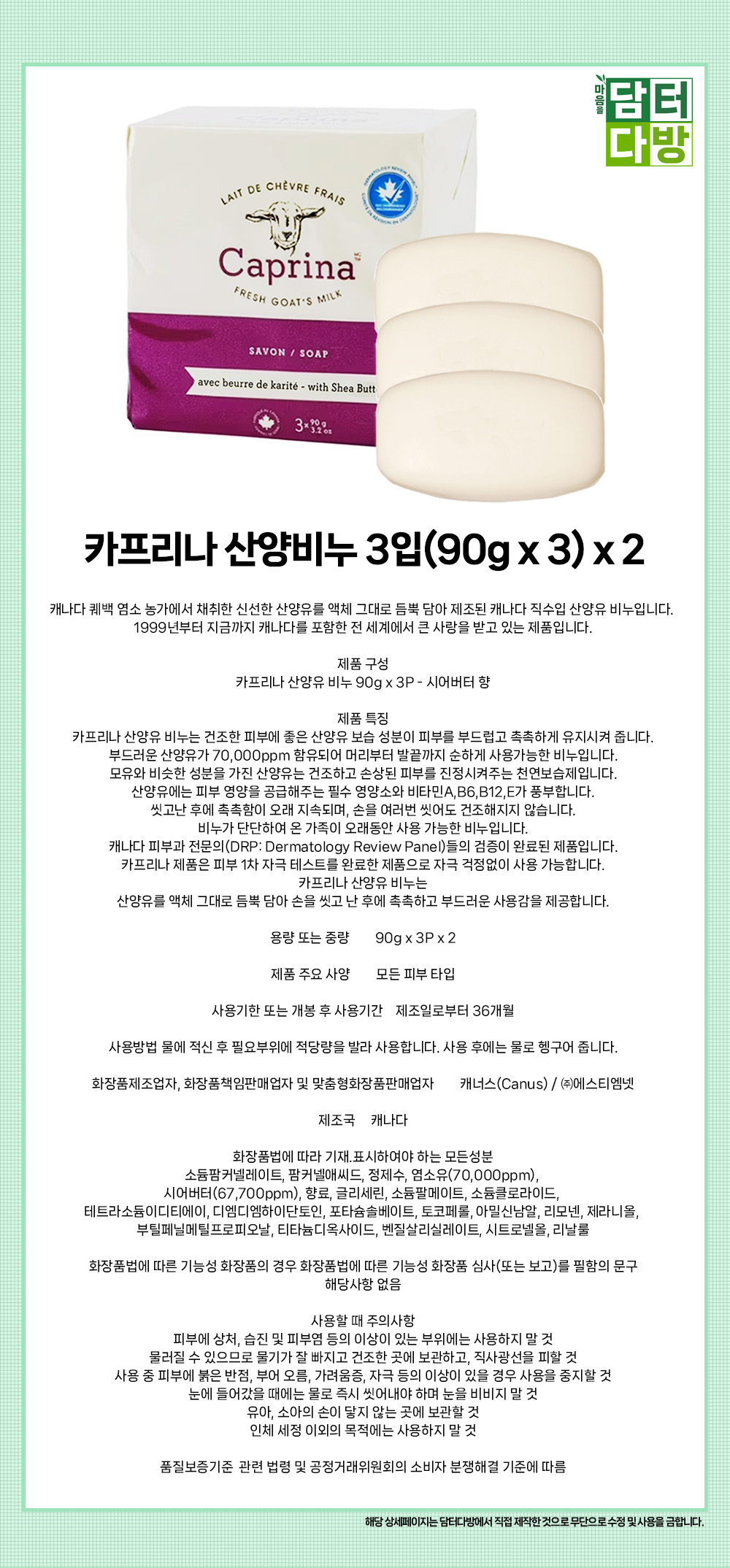 카프리나 산양비누 3입(90g x 3) x 2