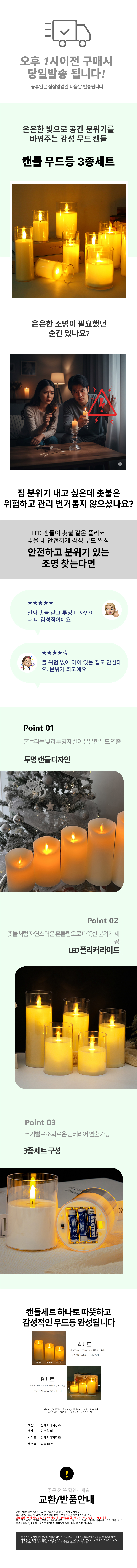 LED 캔들 투명 무드등 조명 양초 3종 선물세트