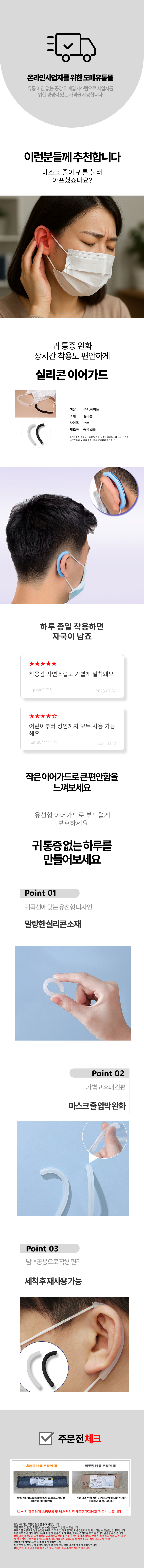 학생 유선형 귀아픔방지 실리콘 가드 끈 귀아픔 귀
