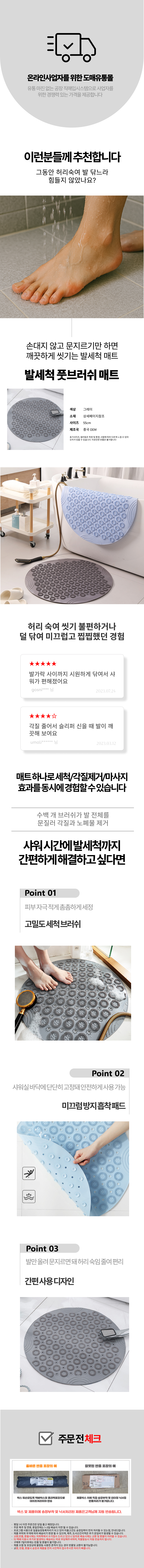 발씻기 발각질제거기 세척매트 욕실 풋솔 세척 브러쉬